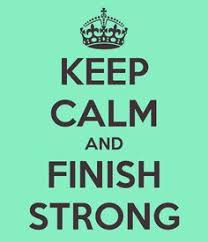 I realize that you have been at all of this for quite some time now. Whether it be your internship or prepping for AP exams you have all been working diligently. DO NOT QUIT. You are almost at the finish line. FINISH STRONG and be proud of a job well done and well finished. You all know my passion for running, it is never about how you start the race but all about how you finish. None of the work you put in matters if you can't walk across that finish line saying you gave it all you had all the while keeping your integrity in tact.